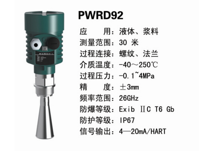 雷達液位計天線發(fā)射出極窄的微波脈沖,這些脈沖以光速穿過空間,與被測介質(zhì)表面相遇,其部分能量被反射回同一天線接收。發(fā)射和接收脈沖之間的時間間隔與天線到被測介質(zhì)表面的距離成正比。由于電磁波傳播速度極高,發(fā)射脈沖與接收脈沖之間的時間間隔非常小(納秒級),難以確定。PWRRD92雷達液位計采用一種特殊的解調(diào)技術(shù),可以準(zhǔn)確識別發(fā)射脈沖與接收脈沖之間的時間間隔,從而進一步計算天線與被測介質(zhì)表面的距離。